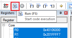 To debug the application, click load (or press the F8 key). Then, click the Start/Stop Debug Session button.