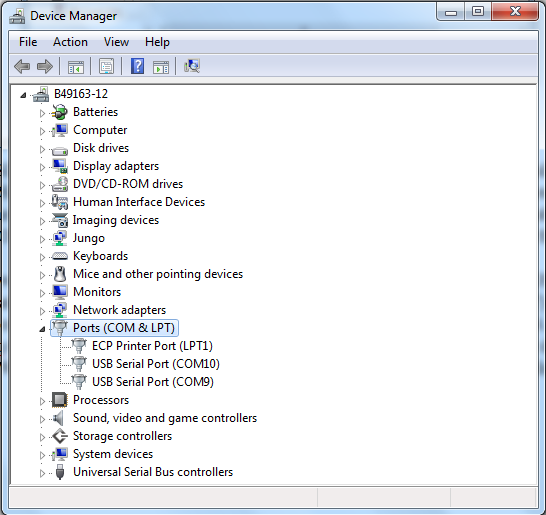 On Windows OS, open the device manager, find USB serial Port in Ports (COM and LPT). Assume that the ports are COM9 and COM10. One port is for the debug message from the Cortex-A53 and the other is for the Cortex-M7. The port number is allocated randomly, so opening both is beneficial for development. On Ubuntu OS, find the TTY device with name