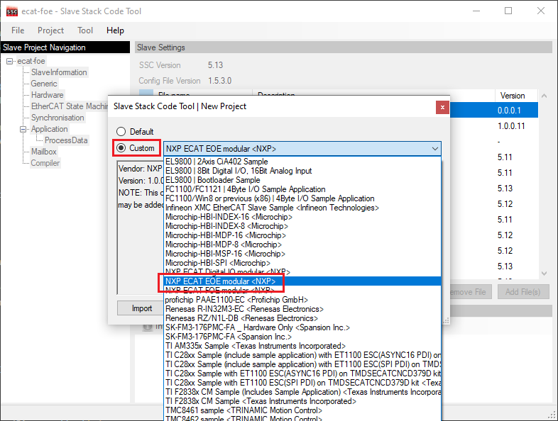 Select NXP ECAT EOE modular <NXP> from the drop-down list.