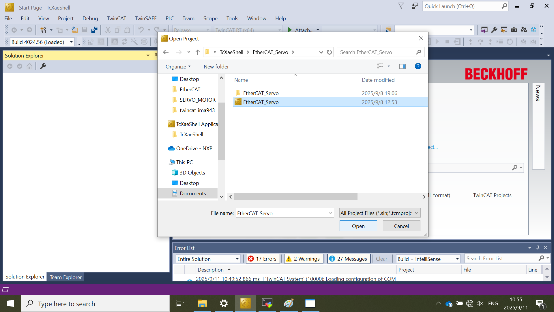 • Select the EtherCAT_sevor project.