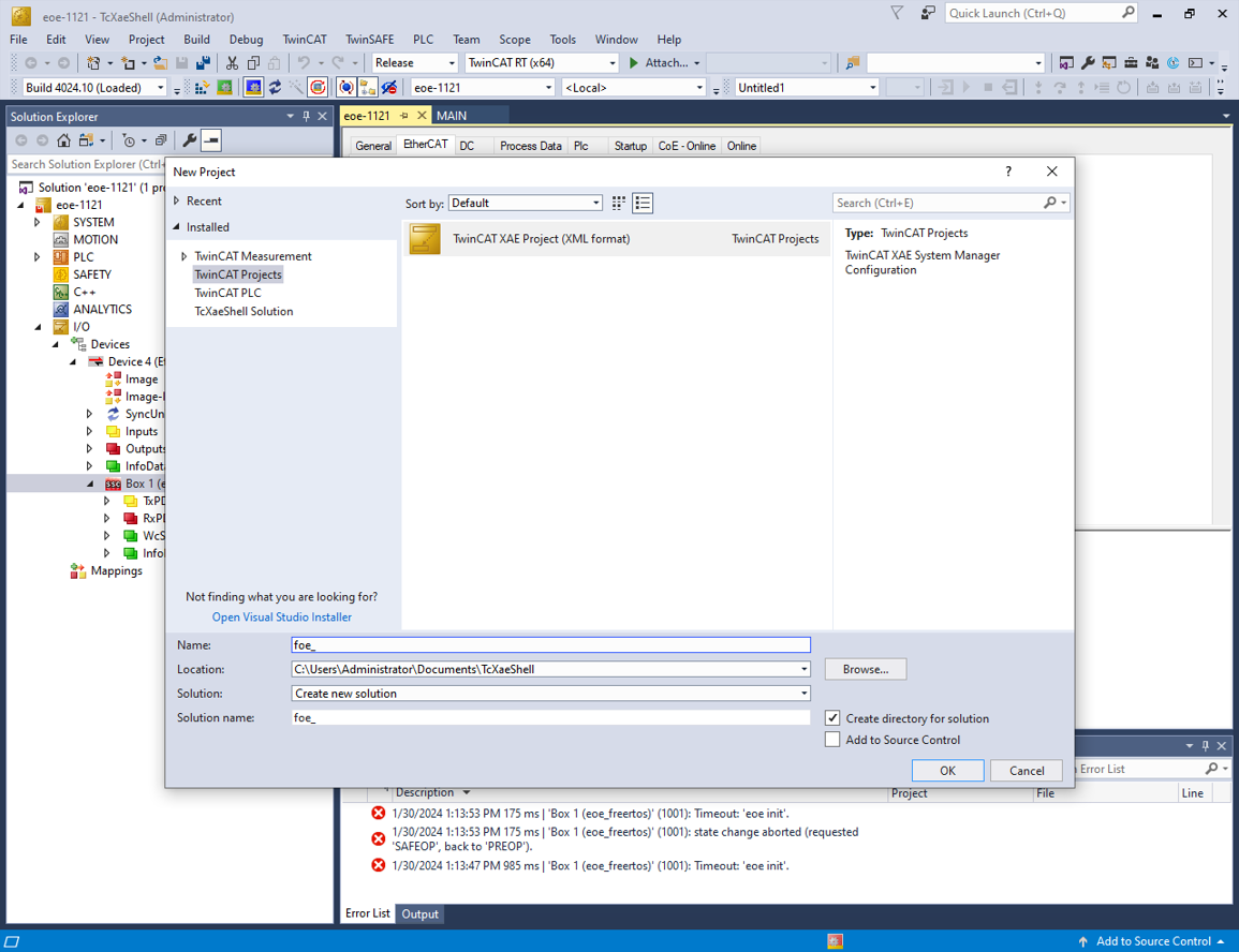 TwinCAT project setup#
