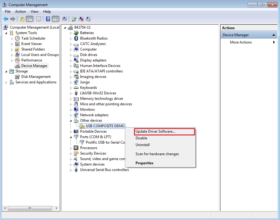 Below are the steps to install the CDC driver on Windows 7 OS. Similar process applies to Windows XP OS.