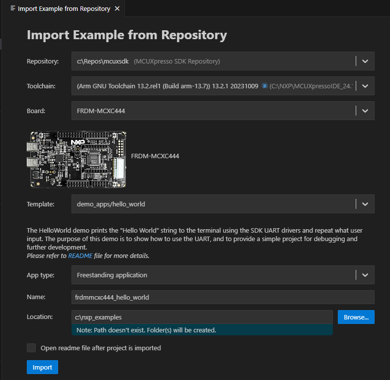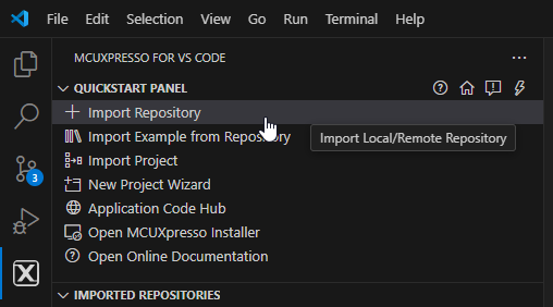 Note: You can import the SDK in several ways. Refer to MCUXpresso for VS Code Wiki for details.