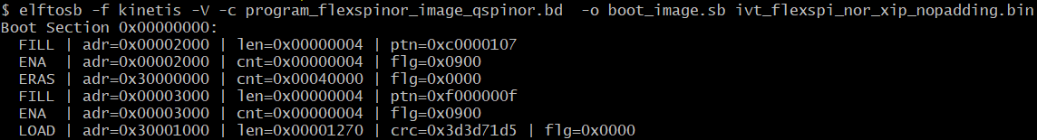 The ivt_flexspi_nor_xip_nopadding.bin will be used to generate SB file for QSPI FLASH programming in subsequent section.