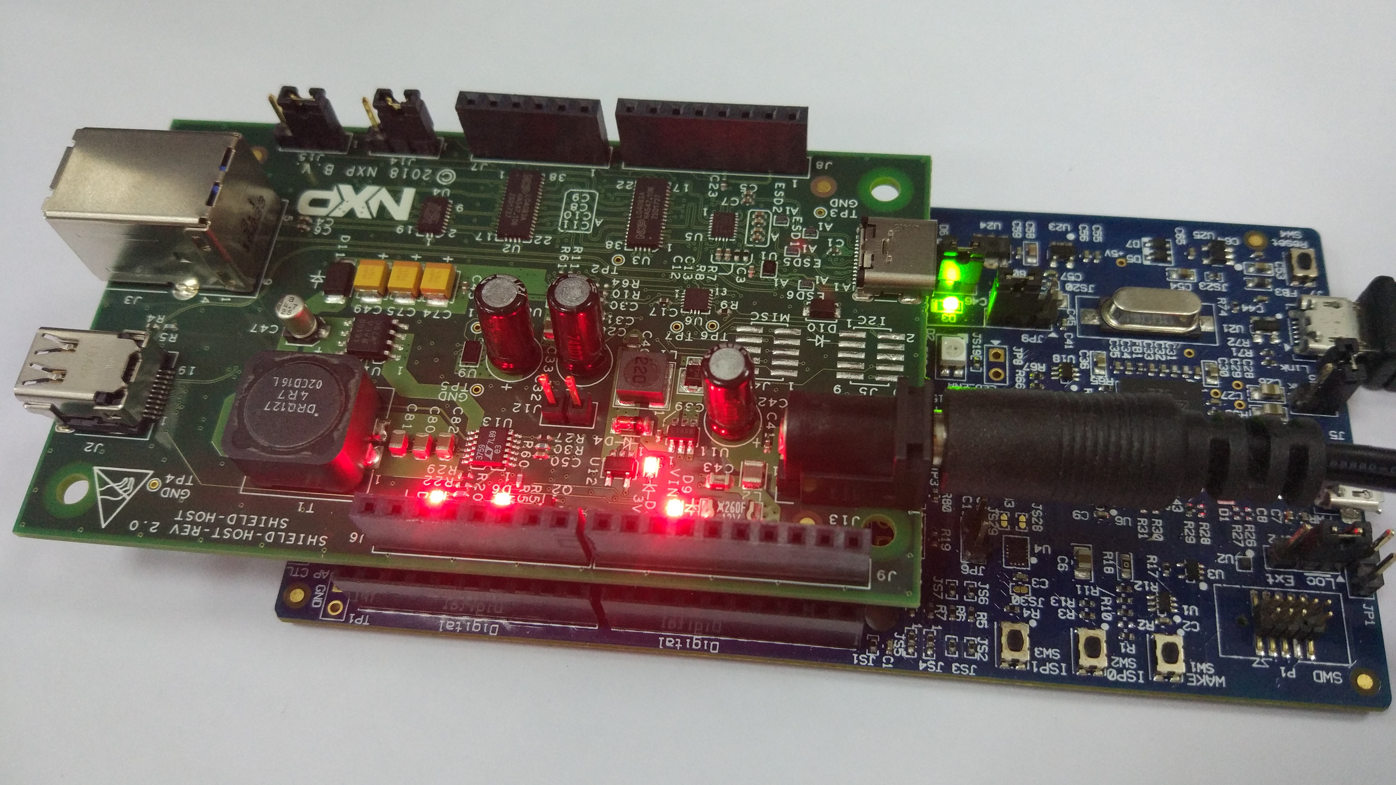 Because USB Type-C PD stack needs one provider and one consumer, the demo hardware needs two of the same set of devices; a development board and shield board, shield host board or shield dock board. For example, the LPCXpresso54114 and USB-PD/Type C shield board.