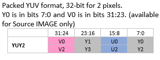 The YUV formats are internally converted to RGB. The pixel selection is unified for all formats by using the LSB of the coordinate.