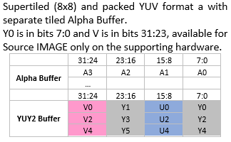Y: both 16 Bytes UV: both 8 Bytes |
