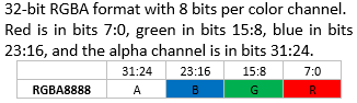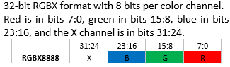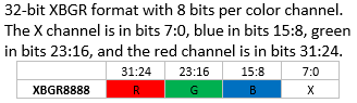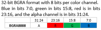 For non-32-bit color formats, each pixel is extended to 32 bits as follows: