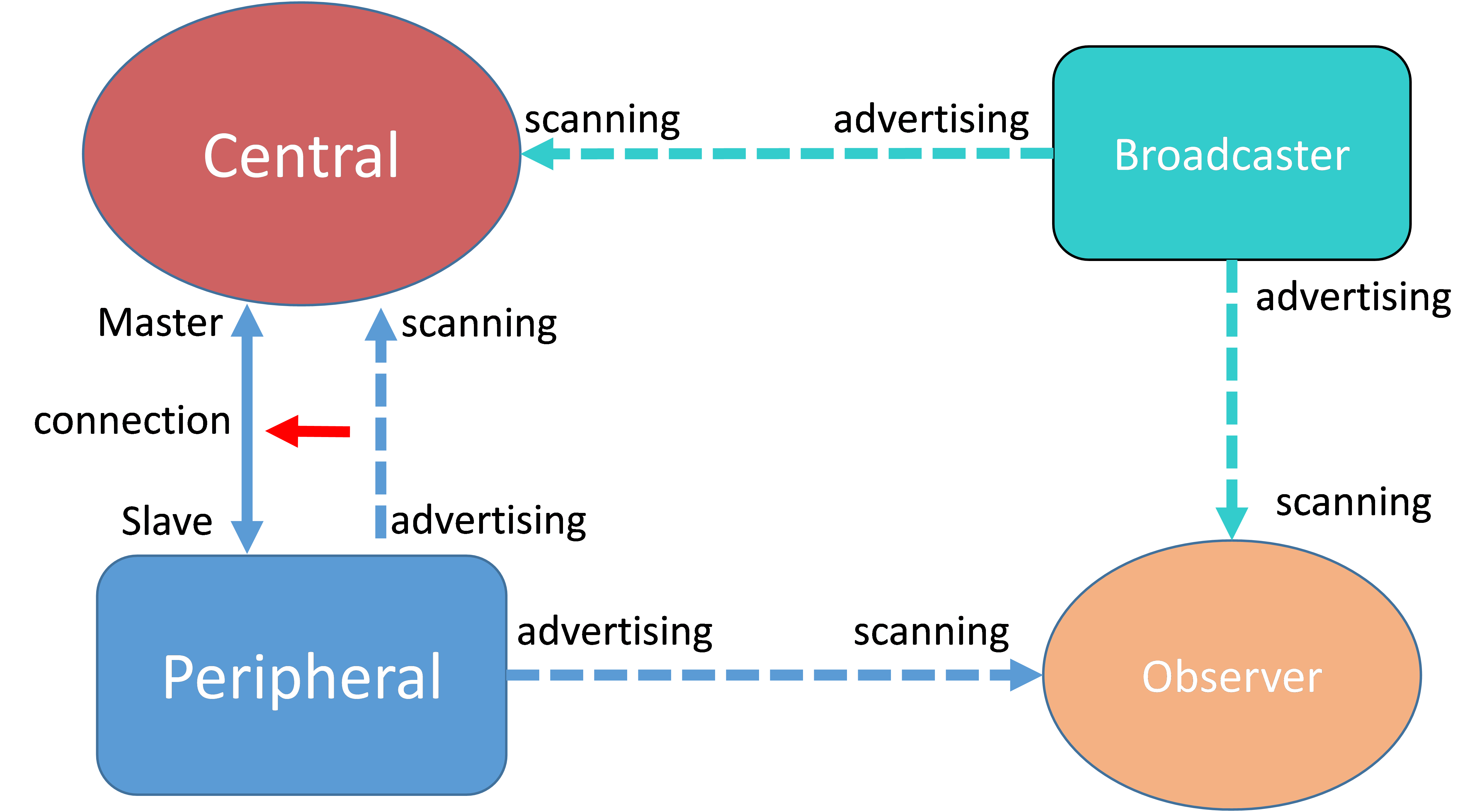 GAP defines four possible roles that a Bluetooth Low Energy device may have in a Bluetooth Low Energy system: