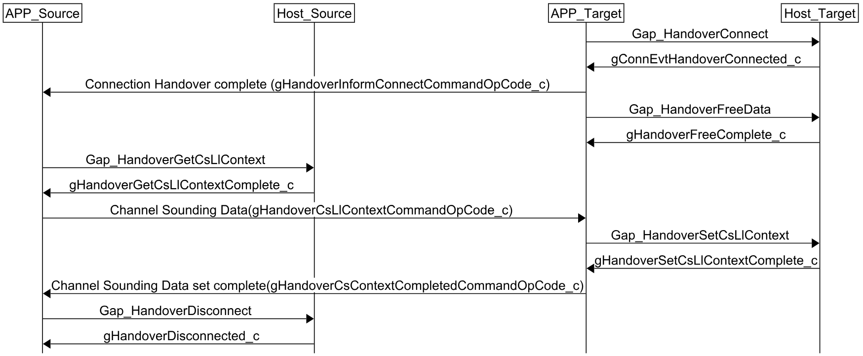 Gap_HandoverGetCsLlContext()and wait for thegHandoverGetCsLlContextCompleteevent.Send the Channel Sounding context to the Target device.