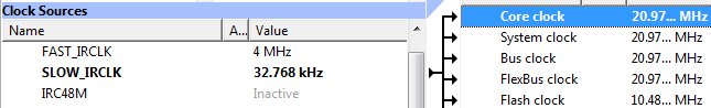 Note: Some clock sources remain inactive even though the checkbox is checked. It is because the clock sources functionality depends on other settings like power mode or additional enable/disable setting options. You can hover the cursor on the setting to see a tooltip with information on the element and possible limitations/options.