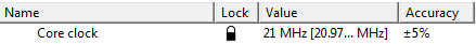 Frequency – Indicates that a clock signal is active and the output is fed with the shown frequency. The tool automatically chooses the appropriate frequency units. In case the number is too long or has more than three decimal places, it is shortened and only two decimal places are shown, followed by an ellipsis (’…’), indicating that the number is longer.
