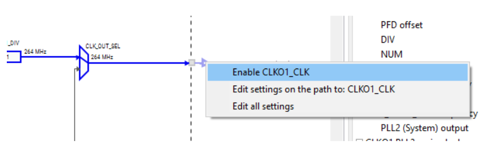 Clock output – Marks the clock signal output that has some name and can be further used by the peripherals or other parts of the processor. You can put a lock and/or frequency request.