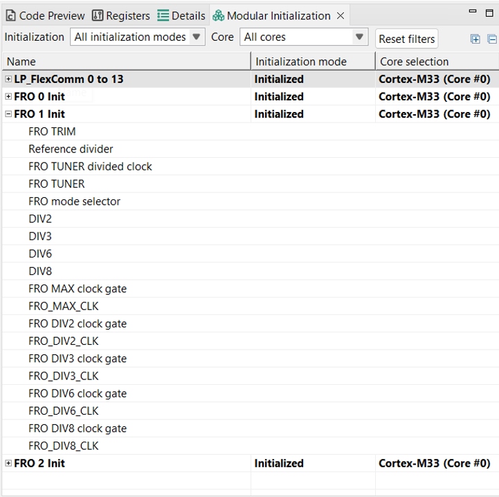 This view is displayed only for MCUs that support modular initialization. This view is shown in Modular Initialization view.