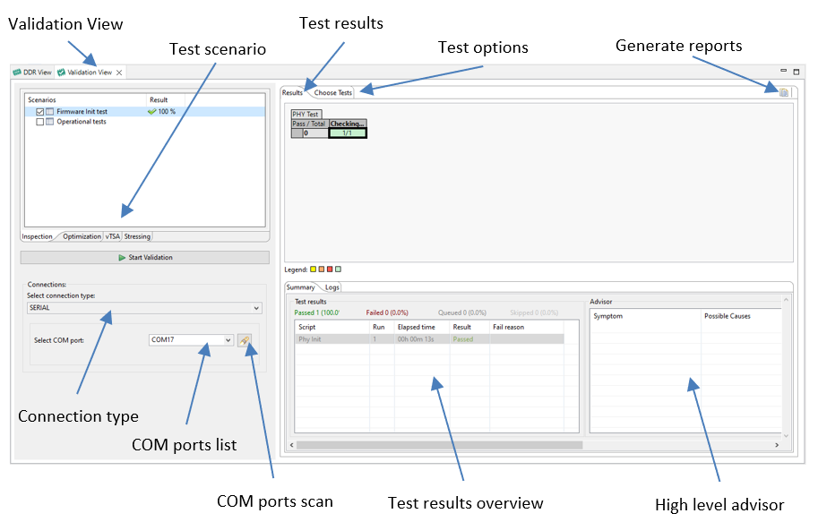 Inspection shows the status of the DDR Controller and DDR PHY configuration, by executing following tests: