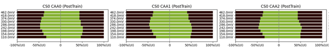 The vTSA tool is an approximation of an actual pTSA. Thus, you may note some variation between the trained delay line value and the vTSA “mid” value. It is observed and expected that this variation may be up to ~20 ps. The key takeaway from the generated eye diagrams should be focused on verifying the ample margin of the trained delay line value within the data eye.