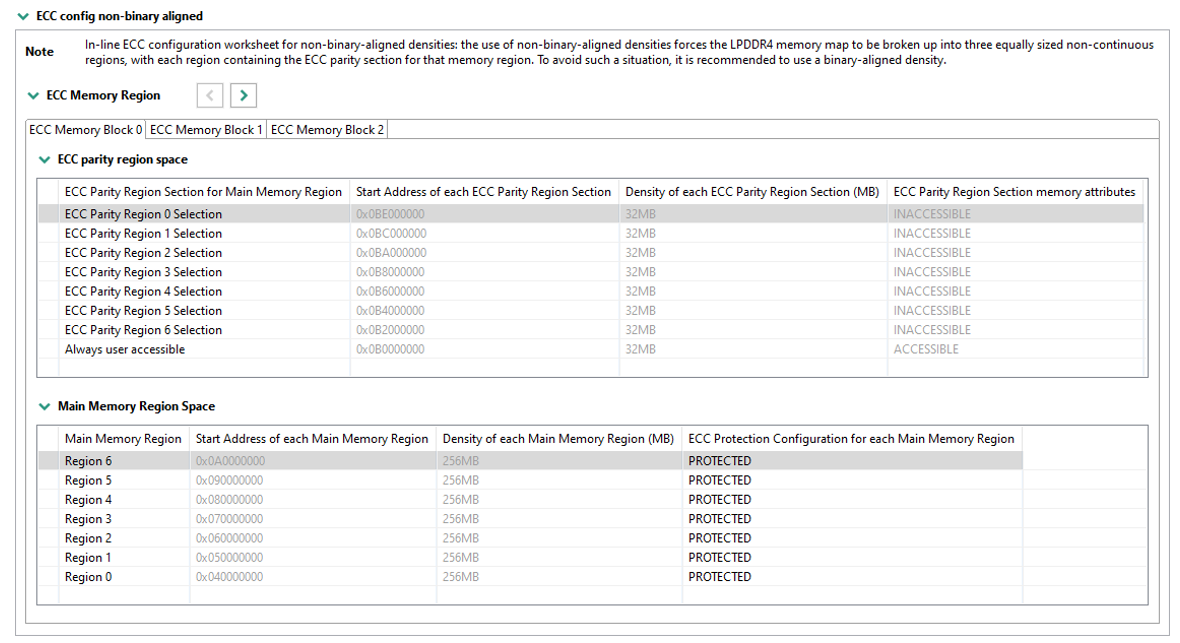 Inline ECC configuration (for devices with Inline ECC support) allows selection of the following parameters: