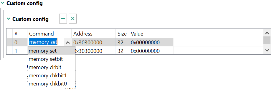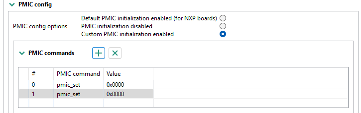 Note: In case the Custom PMIC initialization option is enabled, the available commends are: