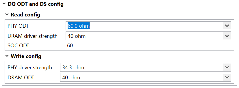 DQ ODT and DS configuration UI