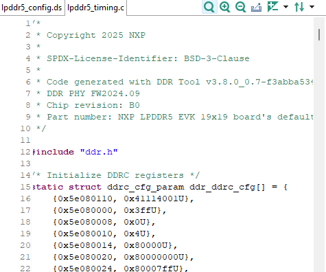 The contents of the imported *.ds file is shown in Code Preview, ddr_config.ds