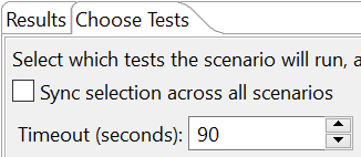 Depending on the test and options selected, the execution time may differ. By default a 90 seconds timeout is set, to assure that in case of an issue the test finishes. To change the default value, edit the Timeout (seconds) option: