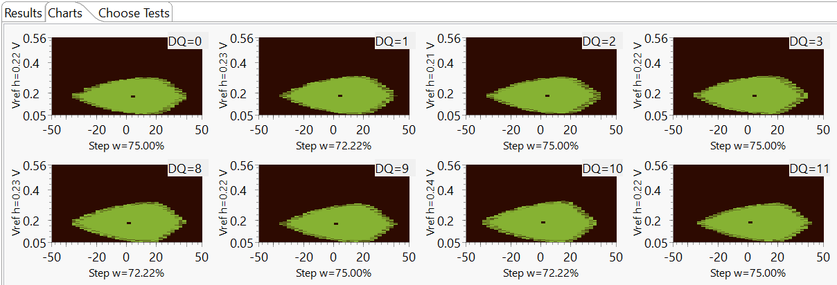 A green pixel in the data eye margin indicates a passing cell. It means for that green pixel the setup and hold time as well as the VIHLac/dc are satisfactory.