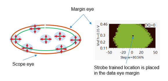 The crossing of DQS signal with trained VREF and delay step is placed in the generated data eye margin.