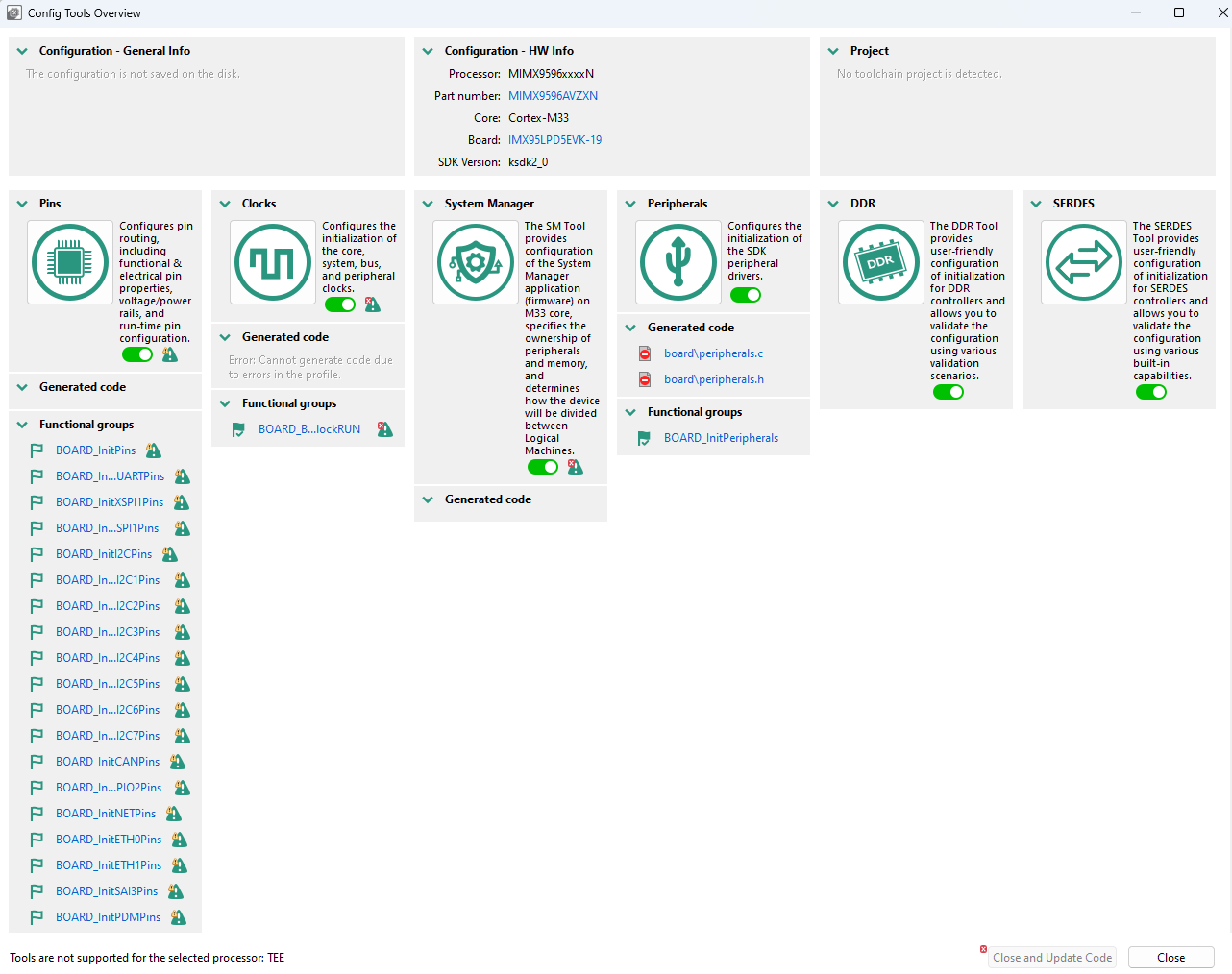 In case of processors with the System manager, the default EVK board is supported by the DDR tool. For custom boards, the System manager for that specific board must be selected to be able to run memory tests.