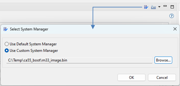 To select a custom System manager, use the Select System Manager button, select Use Custom System Manager and browse for the custom System manager binary.