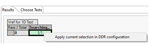 When the test passes, Apply current selection in DDR configuration option is enabled. It sets the respective PHY Vref and DRAM Vref values into the configuration.