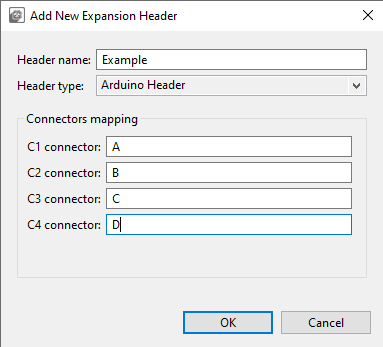 The ID button allows setting expansion header pin labels as processor pin identifiers. Upon user selection, the new identifiers can be also explicitly selected.