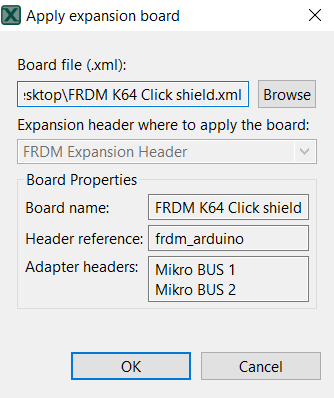 In the Apply expansion board dialog, click Browse to locate the XML file with expansion board information and click OK.