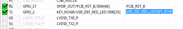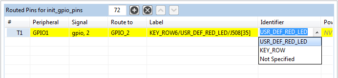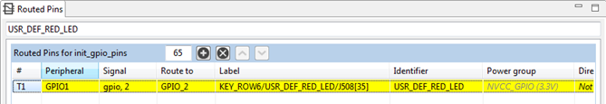 Then use filtering in the Routed Pins view to search configuration for “USR_DEF_RED_LED” to display simplified table content to easily modify current GPIO_2 pin routing selection.