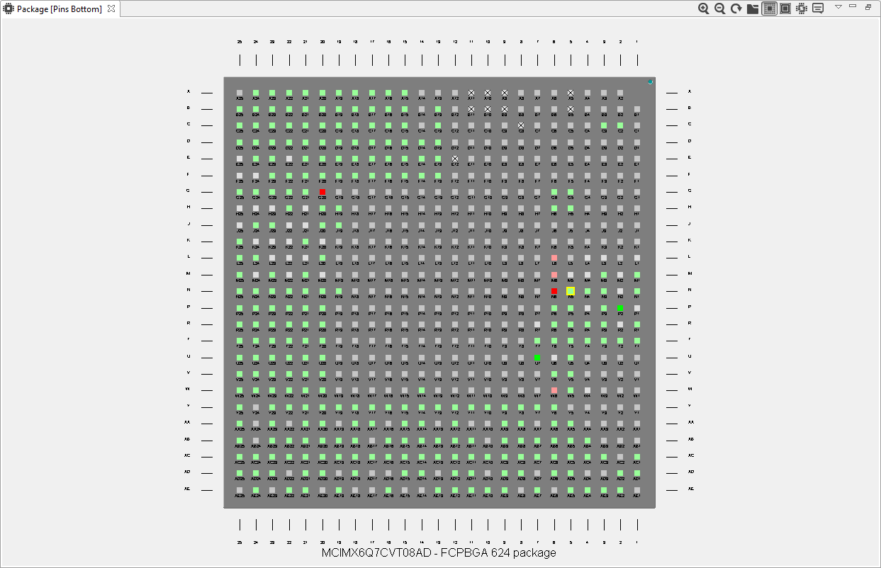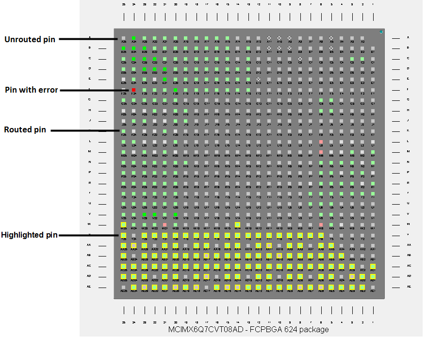 Green indicates that the pin is muxed or used.