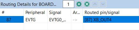 Peripheral signals representing on-chip peripheral input or output can be connected to other on-chip peripherals or to a pin through an inter-peripheral crossbar. You can configure this connection in the Routing Details view.