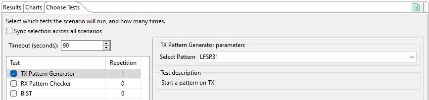 The SerDes tool offers several test scenarios for each available lane.