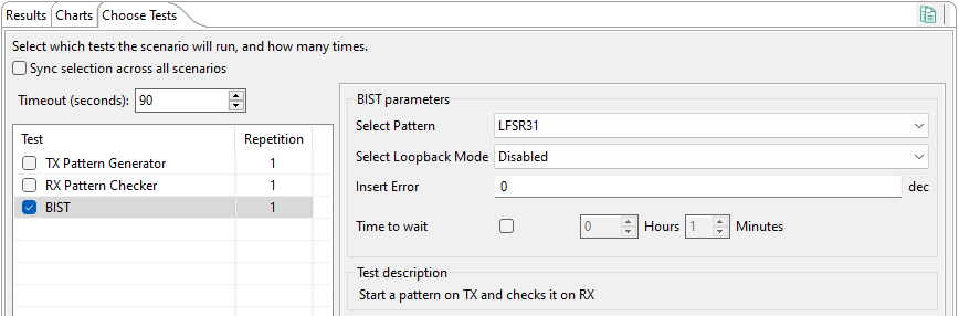 Choose the Time to wait. This represents how much traffic is generated and analyzed by the SerDes lane. The time can widely vary from seconds to days, having a direct impact on when BIST results are available.