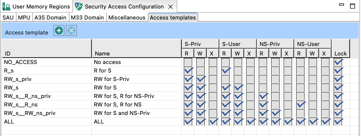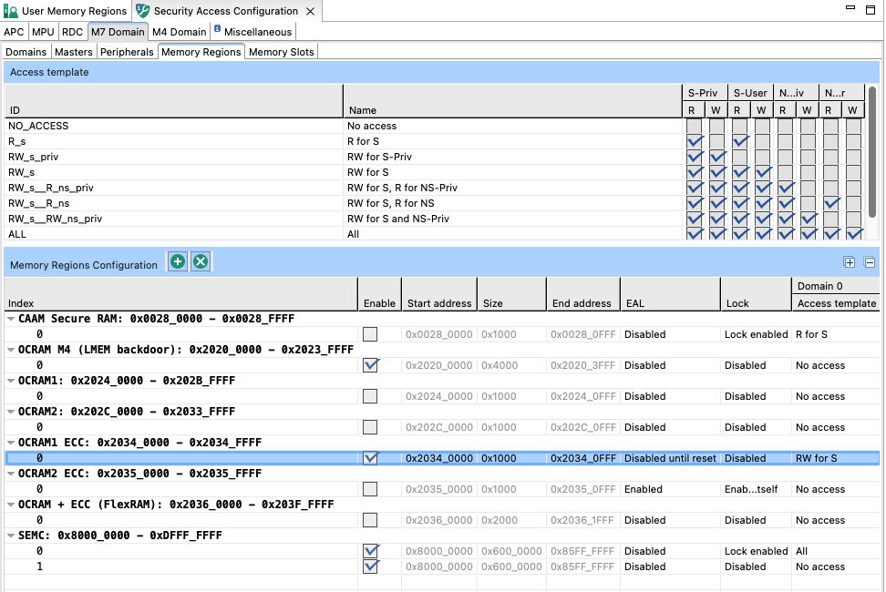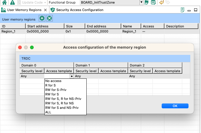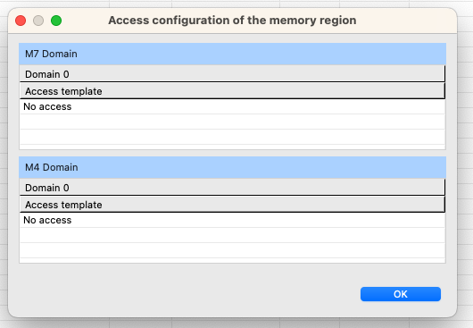 Once you have selected access templates for all domains, click OK to return to the User Memory Regions view.