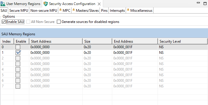 Alternatively, you can set all the SAU memory regions to non-secure access level by selecting the All Non-Secure.