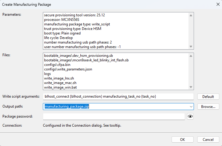 If everything works as expected, create the manufacturing package. For details, see Create manufacturing package. For API key distribution, see API key to access EdgeLock 2GO server.