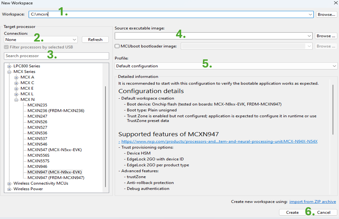 When you start the Secure Provisioning Tool for the first time, it will ask you to create a new workspace, the folder with all files needed for your project. You can also create a new workspace later using command: main menu > File > New Workspace.